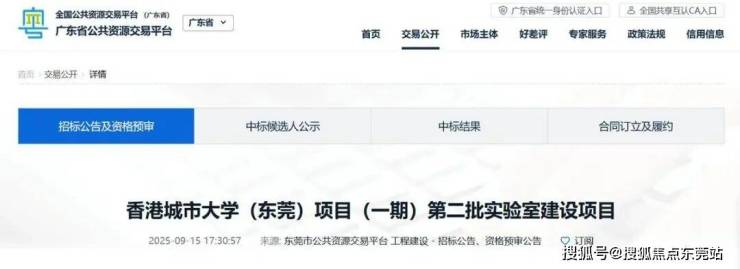 近日,城市大学(东莞)项目扶植送来新进展——广东省公共资本买卖平台正式发布“城市大学(东莞)项目(一期)第二批尝试室扶植项目”投标通知布告。该项目总投资额达1227944300元,打算于2025年10月28日开工,2026年1月19日完工,总工期83天。